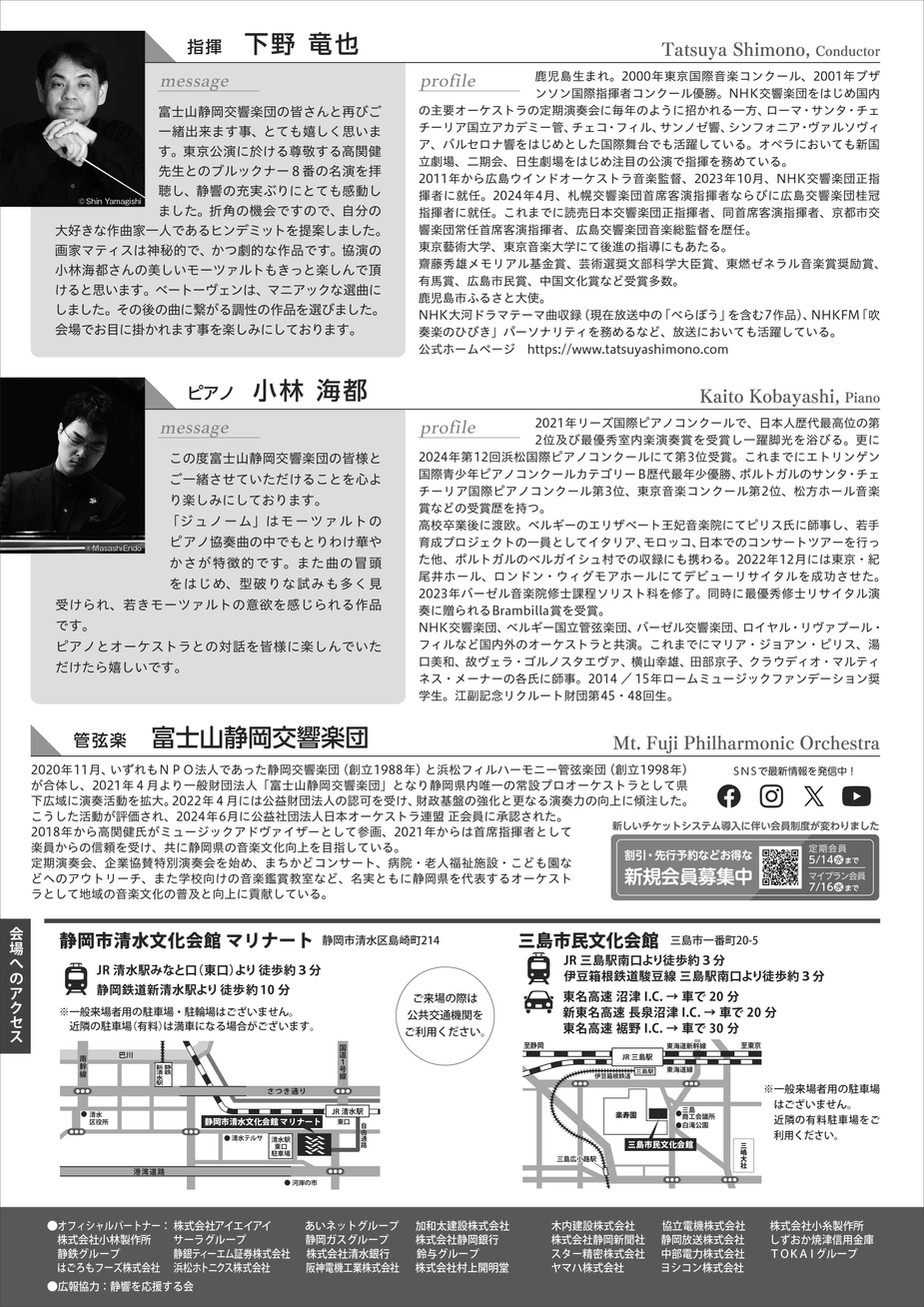 富士山静岡交響楽団 TEL054-203-6578(平日9:30~17:30)